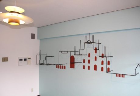 コンクリートの壁面にアクセントクロスと小窓形のカッティングシート